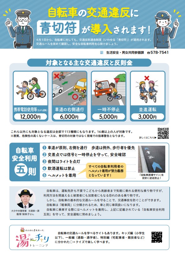 大分県警は、2026年4月より自転車の交通違反に反則金(青切符)を科す制度を導入します。