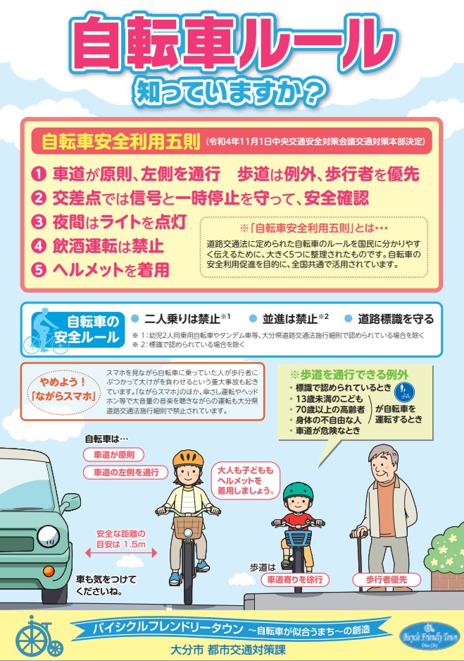大分県警は以下の「自転車安全利用五則」の徹底を呼びかけています。