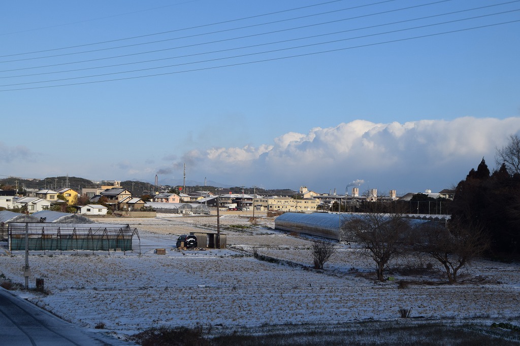 ところが、8時過ぎからは陽が照り始め、高田橋を過ぎるころには一気に雪も解け、常行、堂園に着くころには、家の隅に雪が残るだけのいつもの夕景に戻ってしまいました。次回雪が降れば常行、堂園方面から廻りたいと思います。