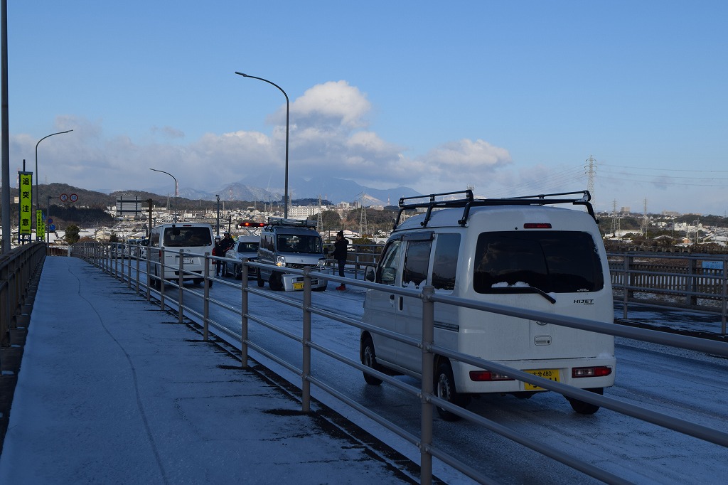 久しぶりに見る雪につつまれた高田輪中の雪景色です。高田橋では慣れていない雪のためか交通事故も発生していました。