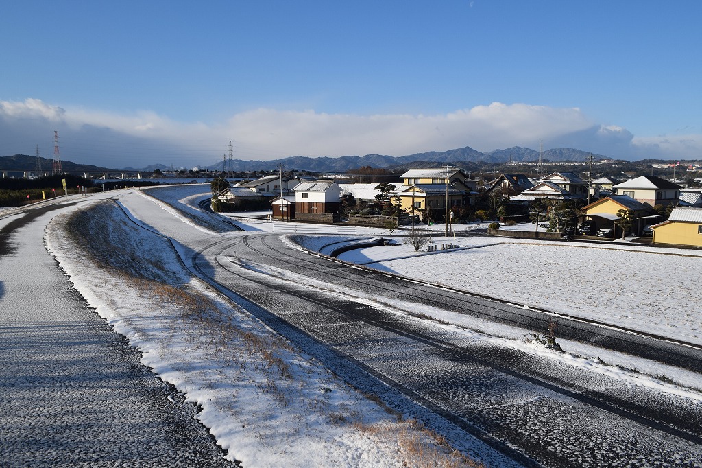 子供や犬と一緒で雪景色を見ると、家にじっとしておれません。さっそくカメラを持ち出し、大野川・乙津川の輪中を歩いてみようと出かけました。