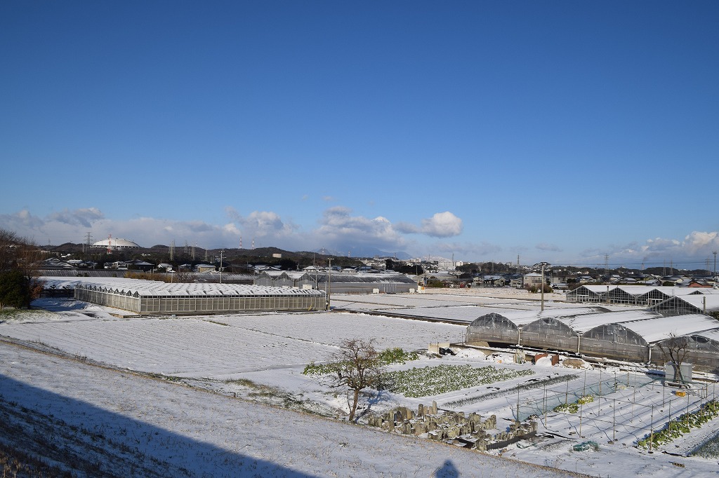 丸亀地区のビニールハウスも雪につつまれています