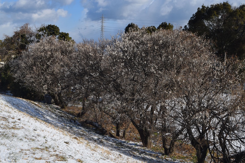 また、雪が乗っているのかと思って近づくと、梅の花でした。寒い中にも春は近づいています。
