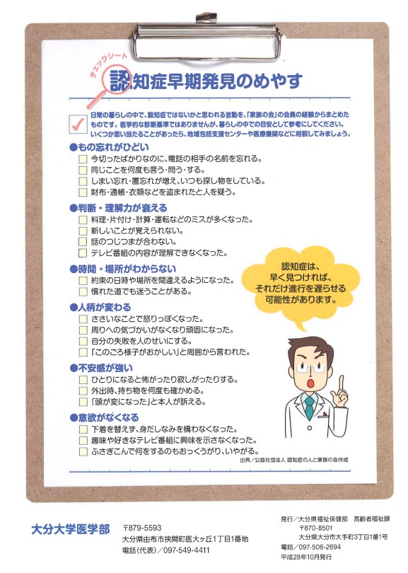 大分県が作成している認知症のチェックシート(早期発見のめやす)が掲載されています。