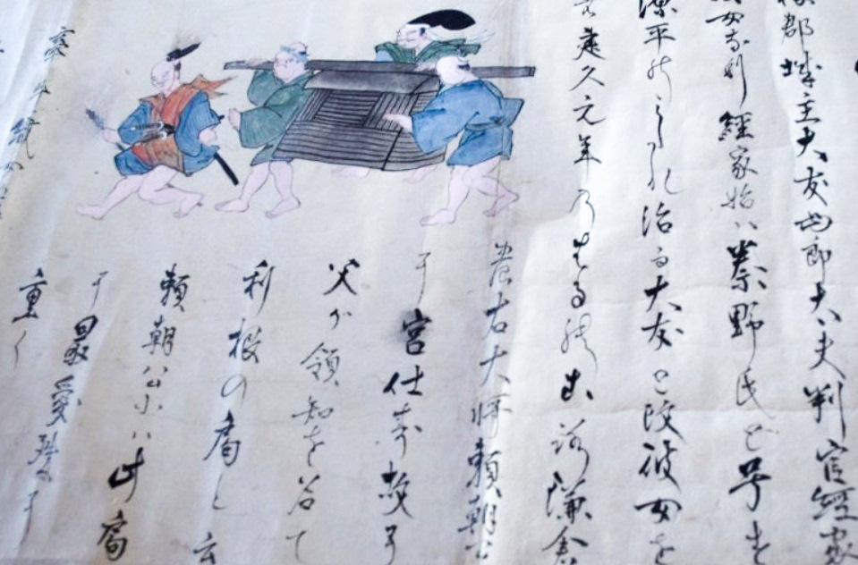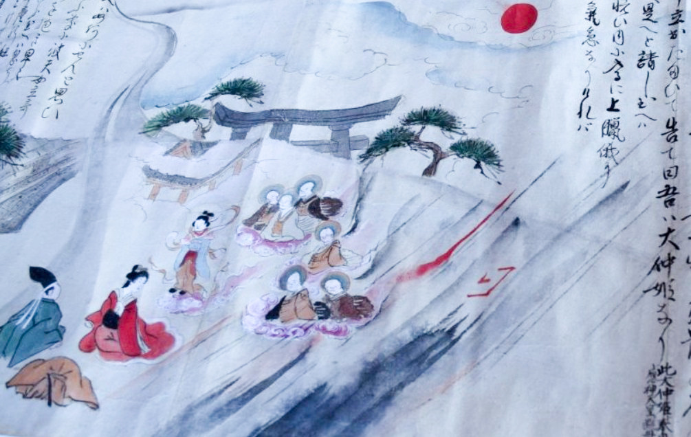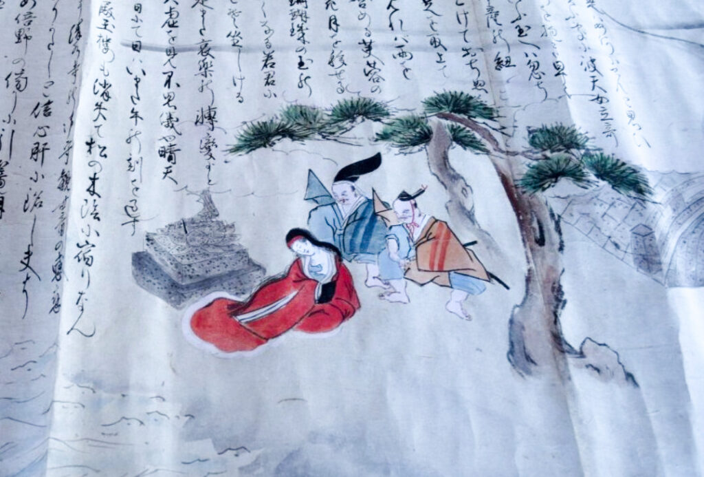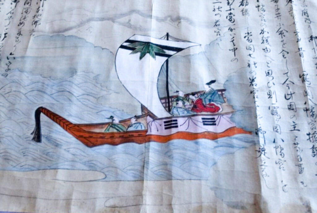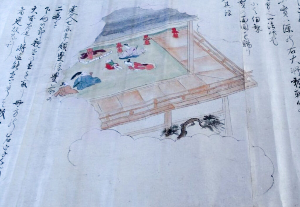 神社では宮総代の方が受付をされており、神社の拝殿には絵巻物がテーブルに展示されていました。受付の方に写真撮影の確認を取るとOKということで急いで絵巻物の写真を撮らせていただきました。慌てて撮ったためうまく撮れておらず後で後悔しています。