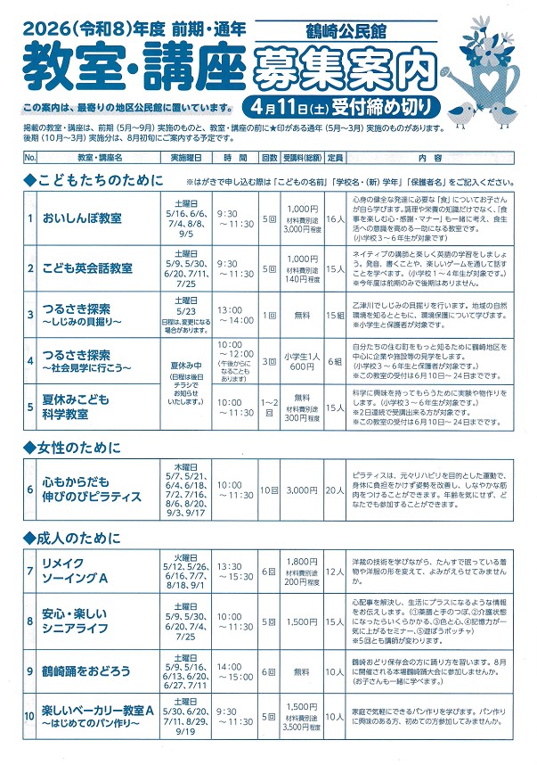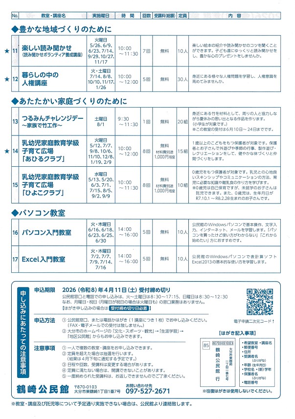 鶴崎公民館 令和8年度 教室・講座募集案内