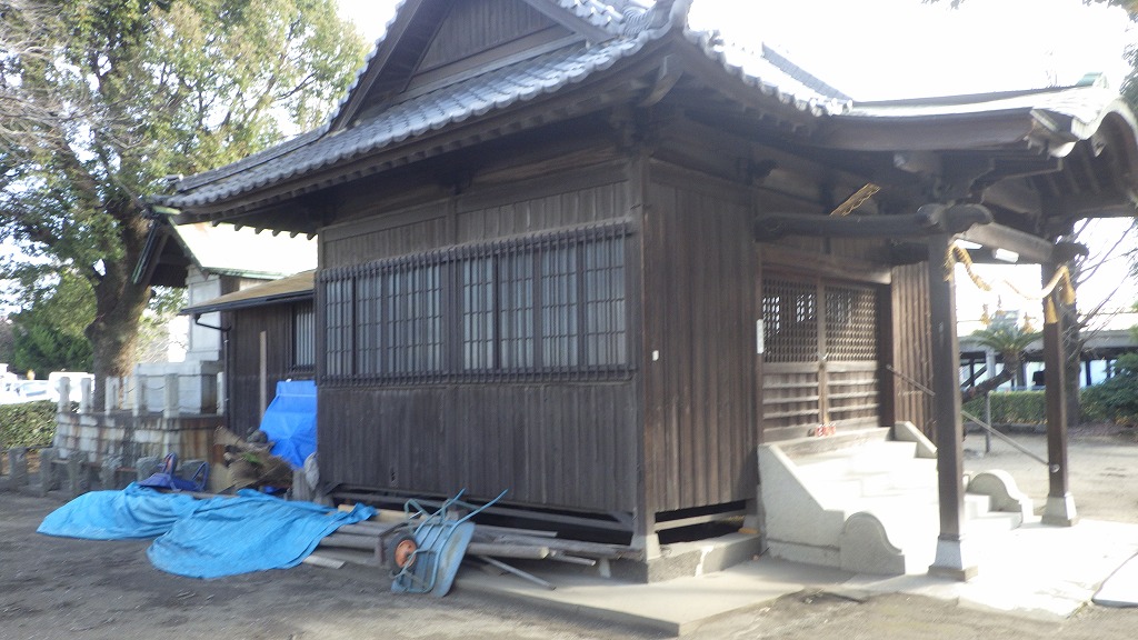 供をして新町の龍神社(次にアップしています)まで御神幸が行われ、 御輿が社殿に還御すると、 境内で角力を催すのが例となっています。(三佐歴史マップより)