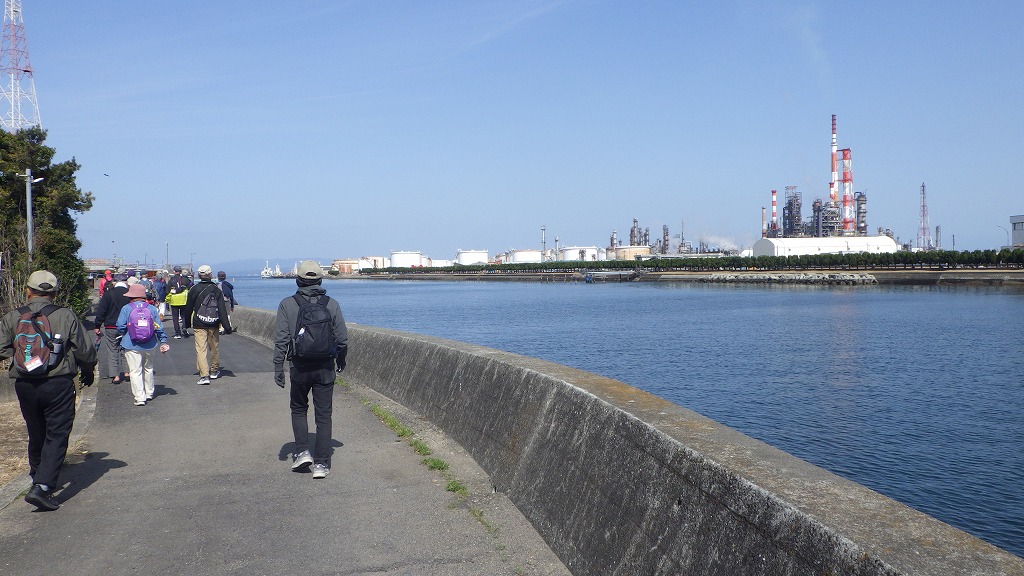 前方にはENEOSの大分製油所の煙突が見えます。 三佐舟泊(みさふなとまり)は、江戸時代に岡藩が唯一の外港として整備した重要な港で、参勤交代や物資輸送の拠点として利用されていました。