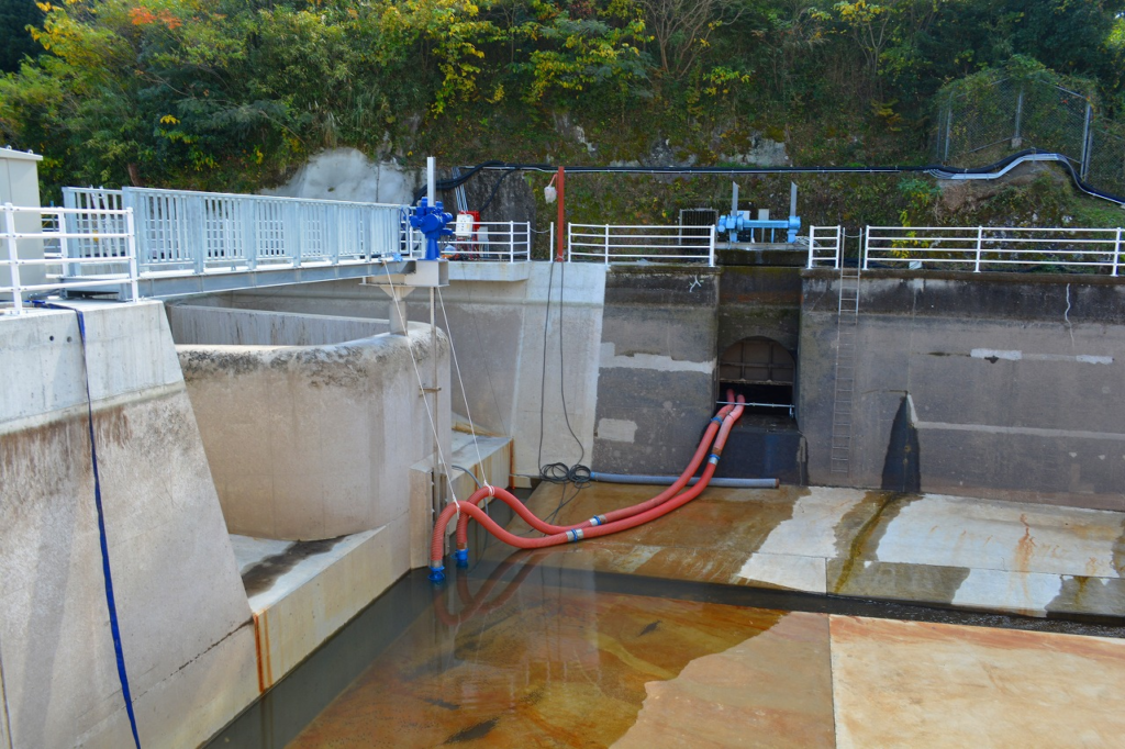大野川発電所を経由して流れてきた幹線は大野川右岸を通る第一幹線と大野川を水管橋を渡り大野川左岸を通る第二幹線に分かれます。