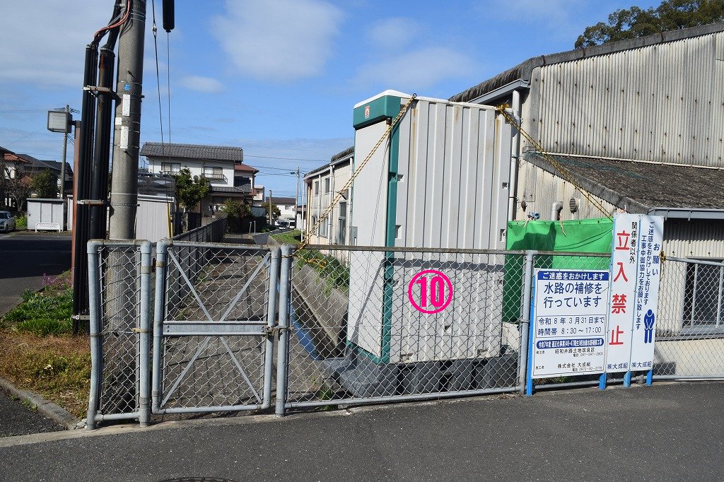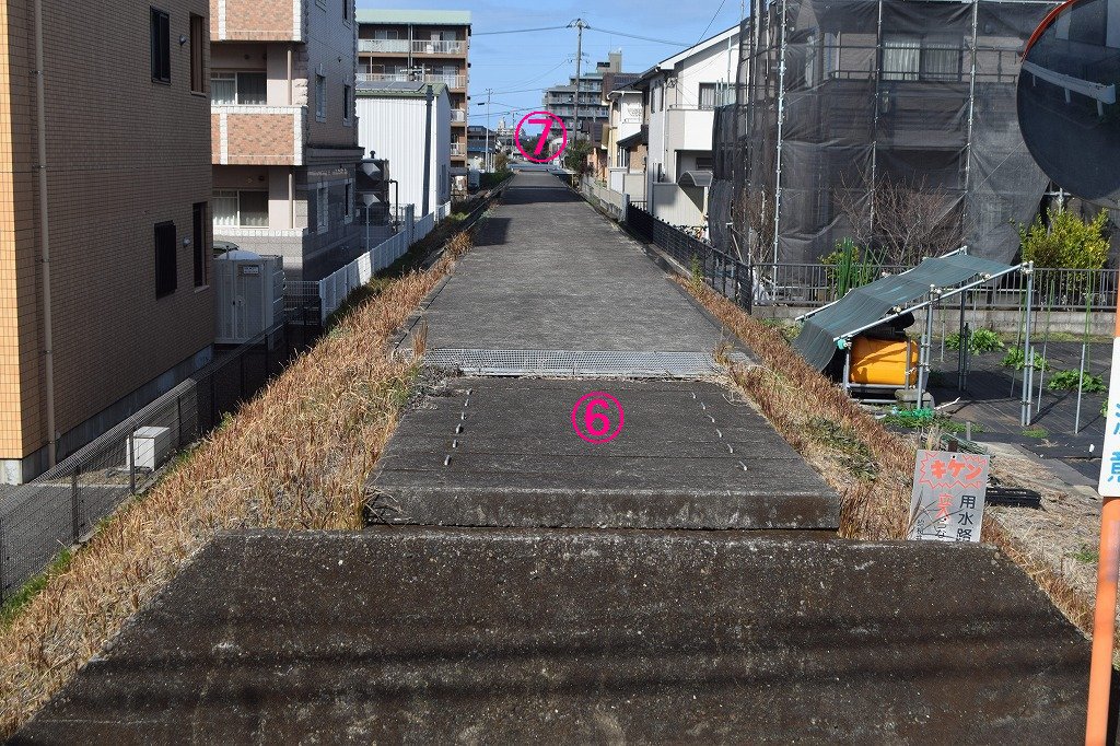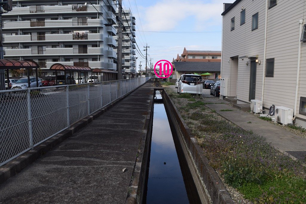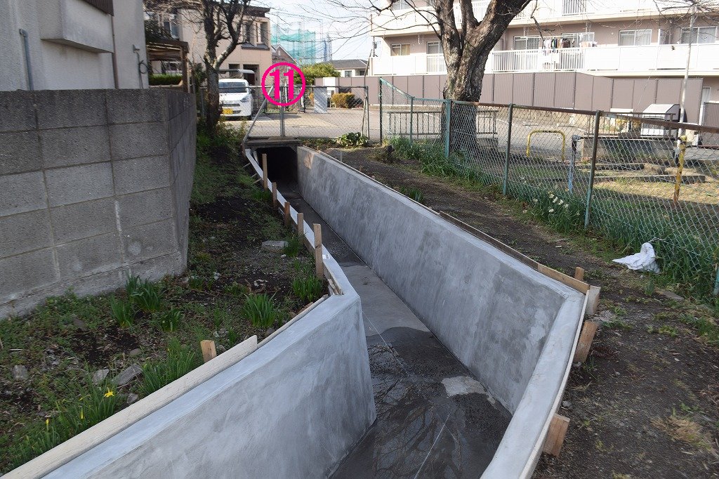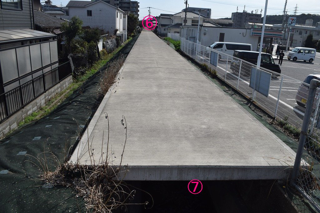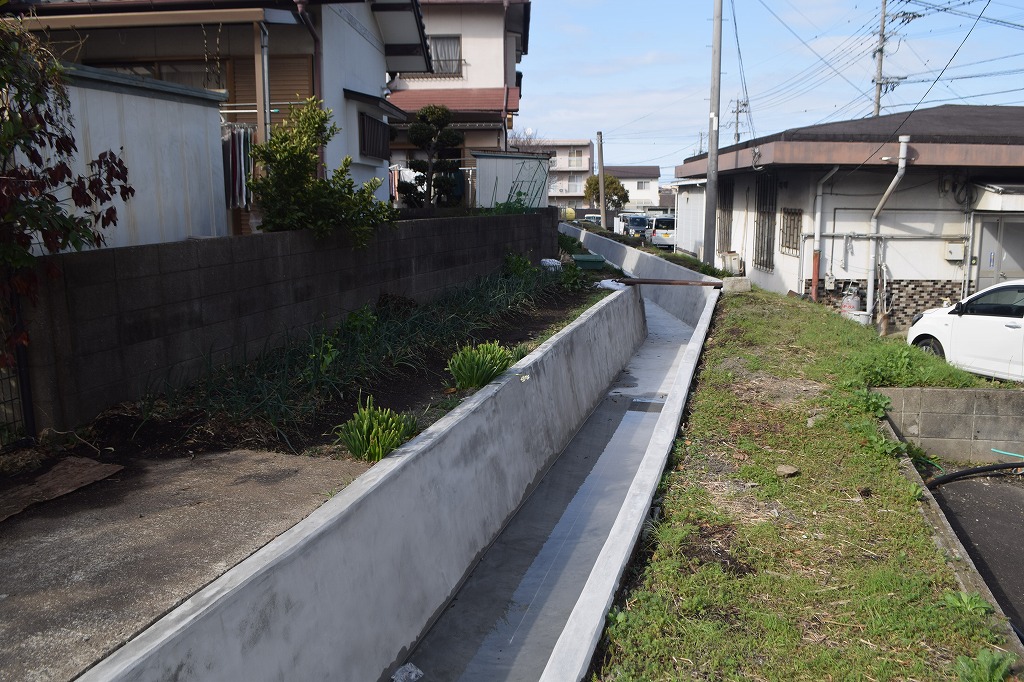 この区間は水路に蓋が設置されています。人家が多いためか?、理由はわかりません。