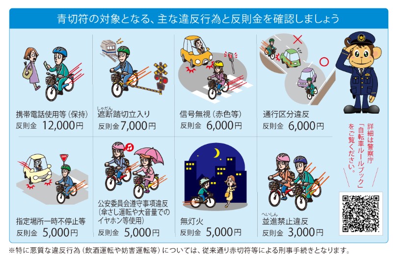 4月1日から自転車で交通違反をした場合、車と同様に反則金を支払うことになる「青切符制度」が適用されます。