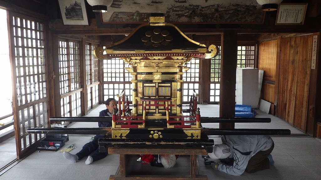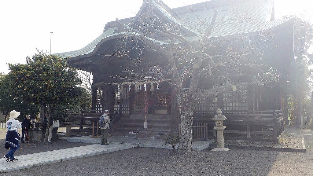 まずは、今日のウォークの安全を剣八幡宮で祈願して出発です。拝殿では4月5日の春季例大祭に合わせて準備中でした。今年もけんか祭りには行ってみる予定です。