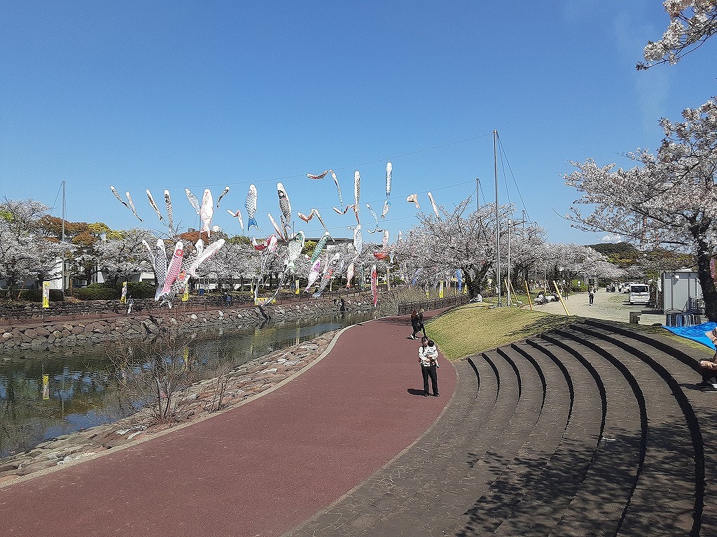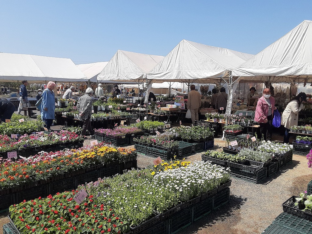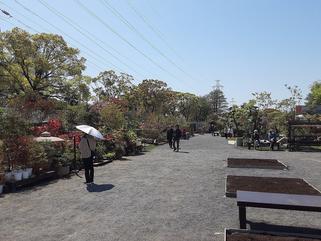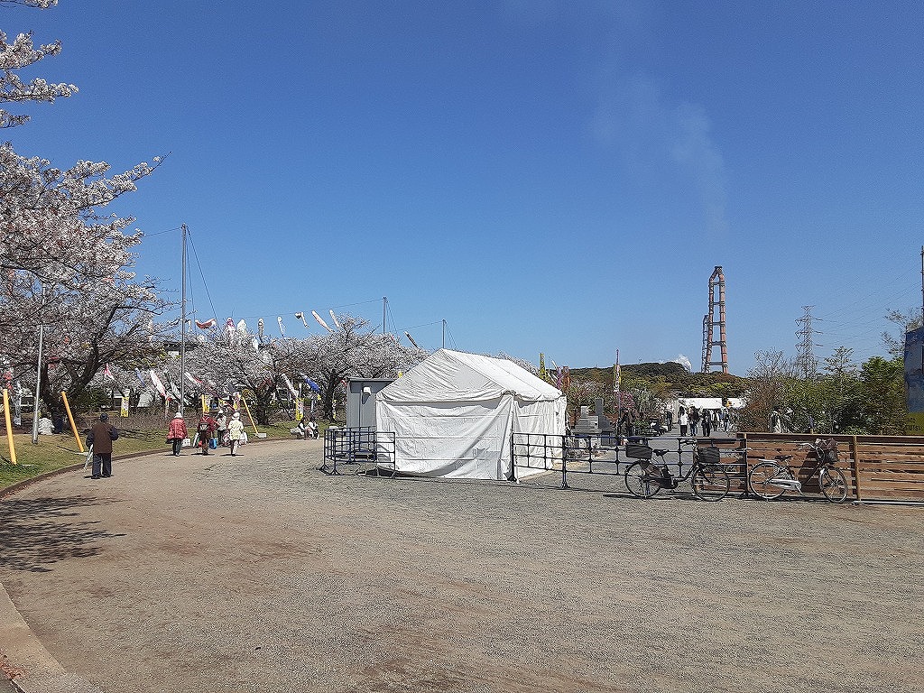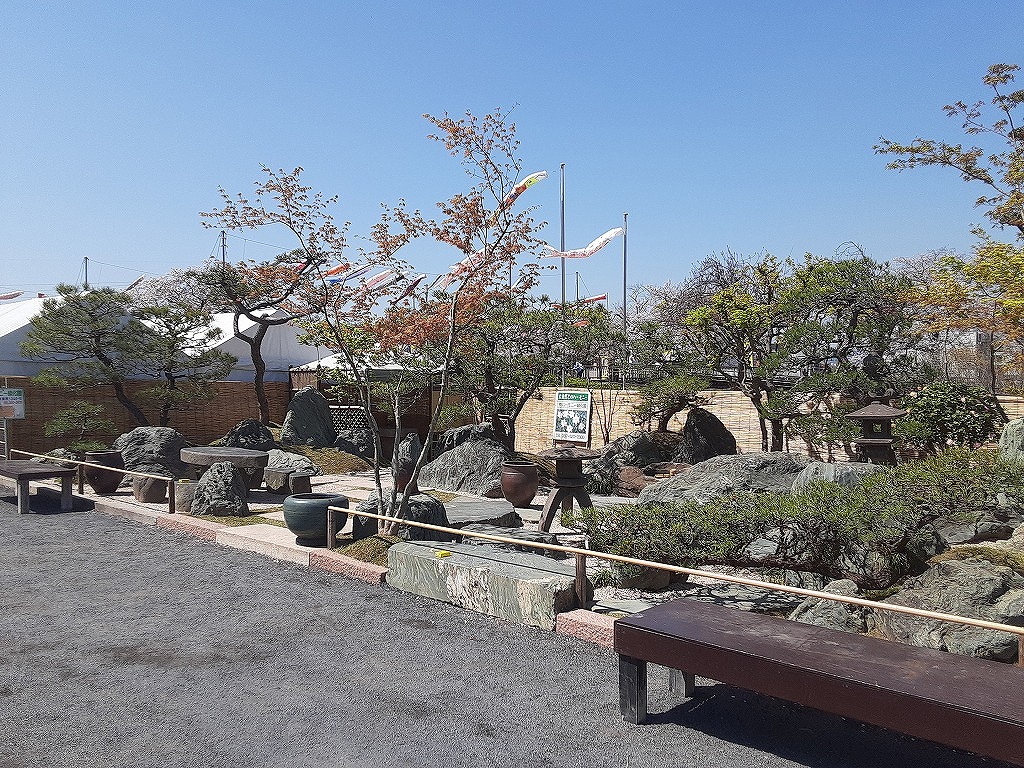 4月8日(水)午前中、平和市民公園の桜を見に行きました。先週末から満開になり今が見ごろです。平和市民公園の多目的広場では「第34回みどりのふれあいいち」が開催されていました。昨日の4月7日からGWあけの5月6日まで開催されます。花や野菜の苗、庭木の販売がされており、盆栽や、数社による庭の展示もされていました。中央の広場では飲食コーナーがあり、 焼きそばなどが販売されていました。