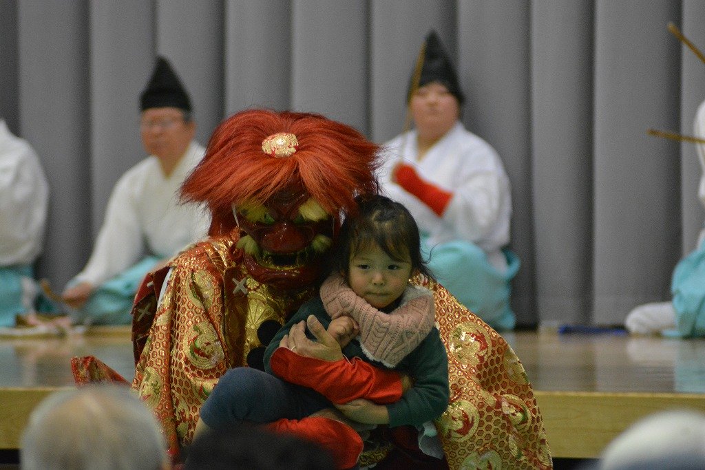 無病息災の願い: 荒神の力に触れることで厄を払い、健康を願うという意味があります。特に、荒神に抱っこされた赤ちゃんは元気に育つと言われており、会場では泣き出す子供や荒神と対峙する子供達で会場は笑いに包まれ賑やかになっていきます。