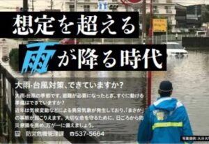 スマホ用 <ページ1> 警戒レベル4 避難指示発令危険な場所にいる人は必ず避難。 警戒レベル3 高齢者等避難発令避難に時間のかかる人は避難開始 <ページ2> 今日からできる防災準備 (マイ・タイムラインの利用方法) ・災 […]